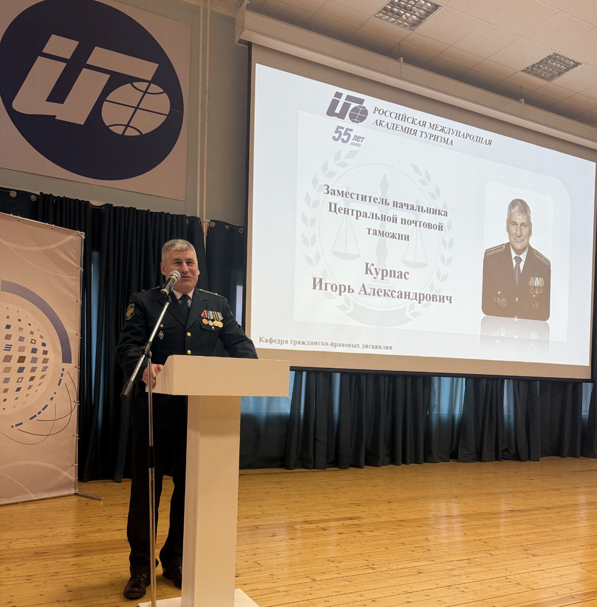 Заместитель начальника Центральной почтовой таможни по работе с кадрами Курпас Игорь Александрович, судья в отставке, подчеркнул, что таможню и Академию связывают дружеские отношения, что многие ребята принимали участи в патриотических акциях таможенных органов, а обращаясь к присутствующим в зале студентам, отметил, что высшее юридическое образование позволяет работать на руководящих должностях в таможенных органах власти,