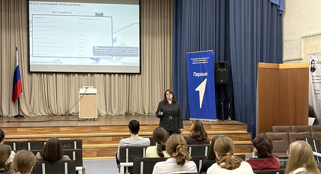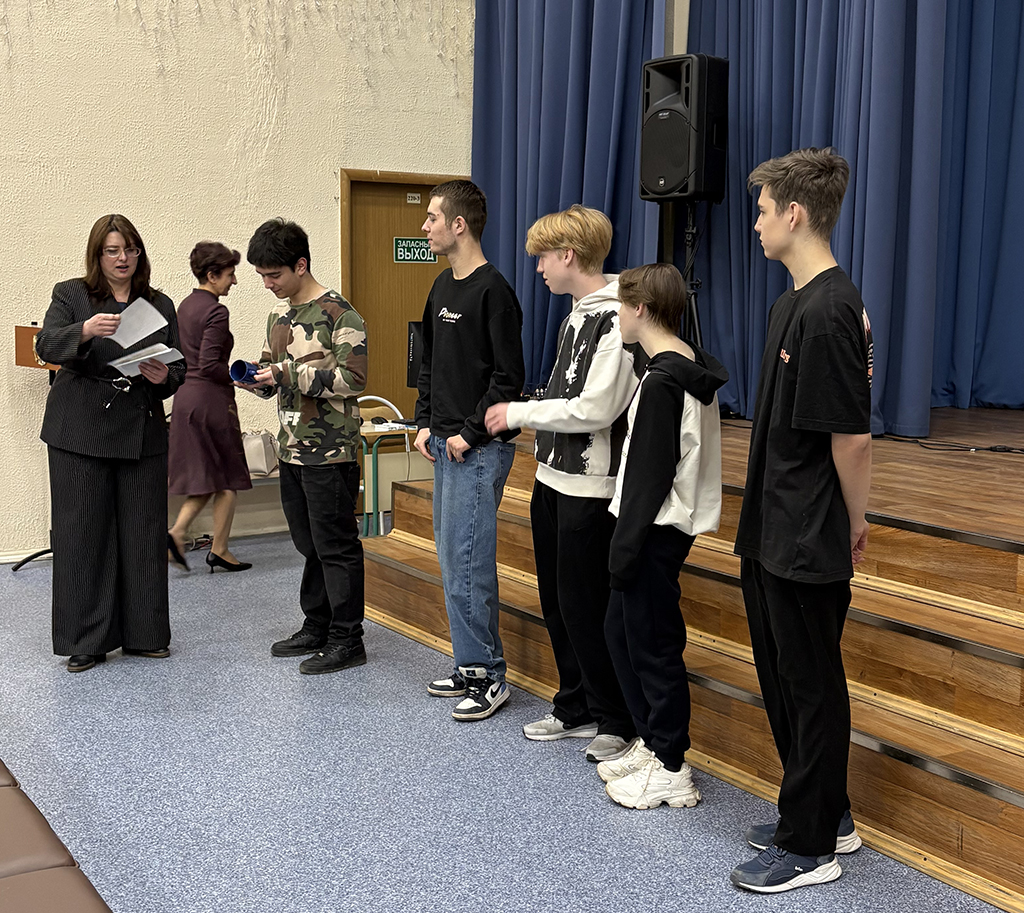 Степуренко О.А. ознакомила учащихся с направлением Менеджмент, а также провела со школьниками викторину, посвященную искусственному интеллекту и РМАТ. Победителям викторины были вручены памятные призы с логотипами РМАТ.