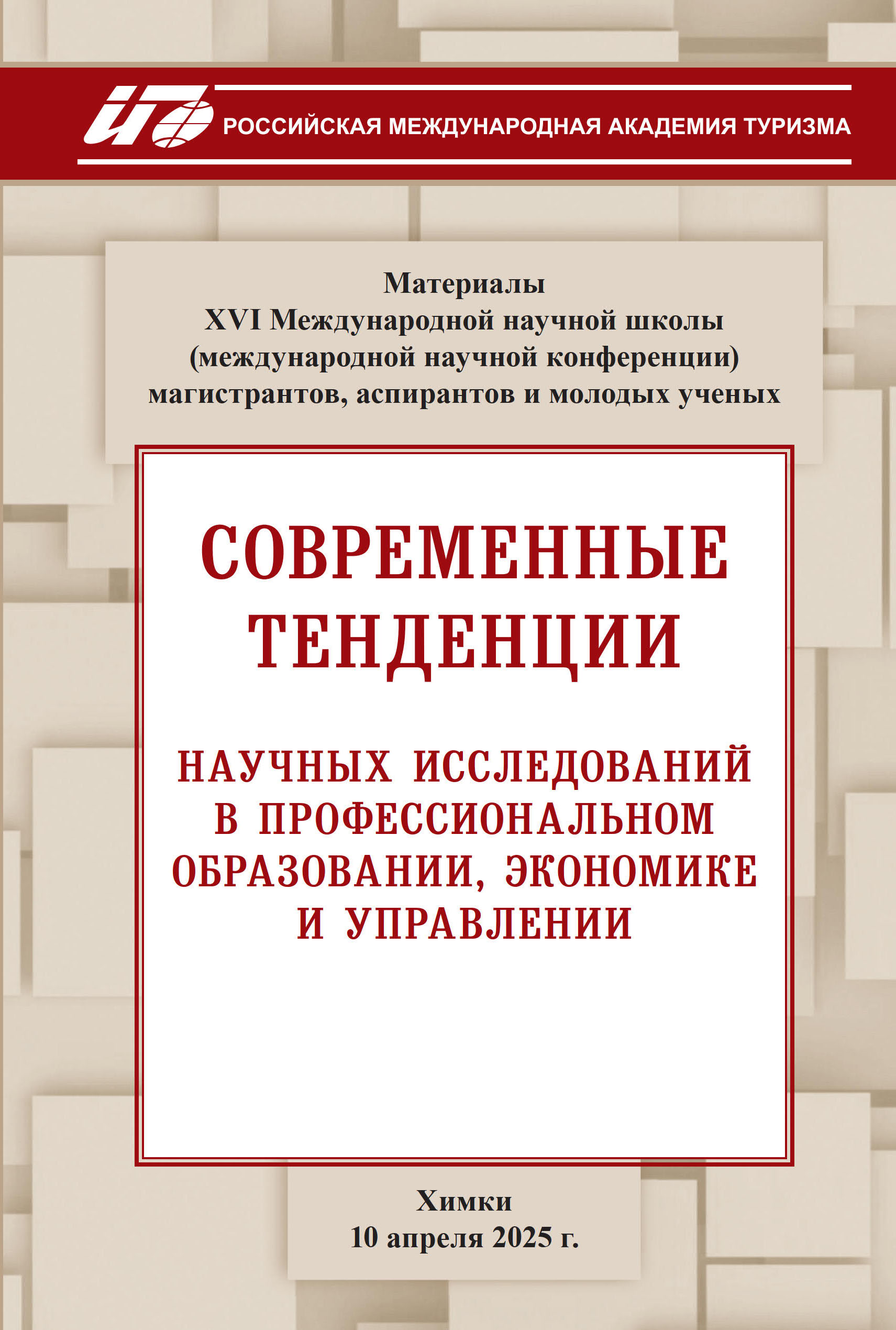 Современные тенденции научных исследований в профессиональном образовании, экономике и управлении: материалы XVI Международной научной школы (международной научной конференции) магистрантов, аспирантов и молодых ученых, Химки, 10 апреля 2025 г. / под науч. ред. В.А. Кальней, Т.В. Рассохиной; Российская международная академия туризма. – Москва: Университетская книга, 2025. – 256 с. – ISBN 978-5-98699-439-0.