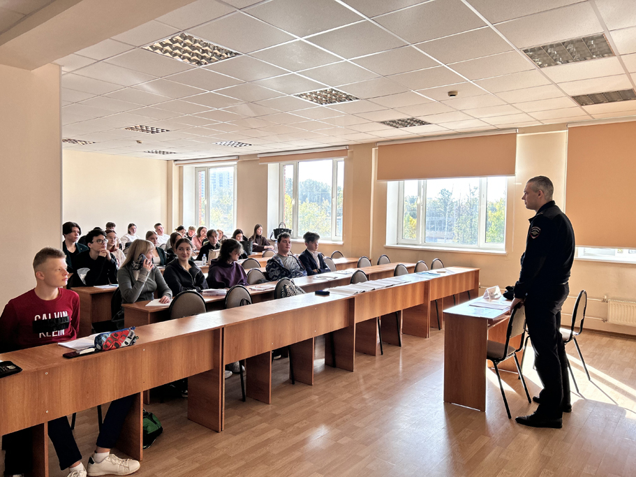 1 октября 2025 года для проведения тренинга в рамках модуля дисциплины к студентам первого курса факультета менеджмента туризма был приглашен старший инспектор отдела Госавтоинспекции Управления МВД России по городскому округу Химки капитан полиции Батанов Никита Юрьевич.