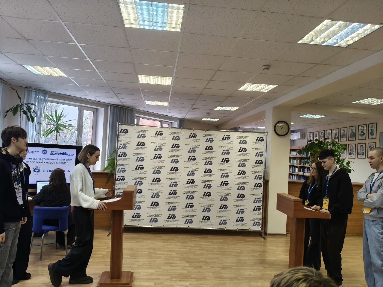 Дебаты на тему влияния искусственного интеллекта на профессиональные сферы вызвали оживленную дискуссию среди студентов факультета среднего профессионального образования специальностей «Операционная деятельность в логистике», «Экономика и бухгалтерский учет» и студентов факультета менеджмента туризма направления «Менеджмент». Модераторами выступали преподаватели кафедры менеджмента и экономики. Участники высказали разные точки зрения относительно перспектив развития технологий и возможных рисков для рынка труда.