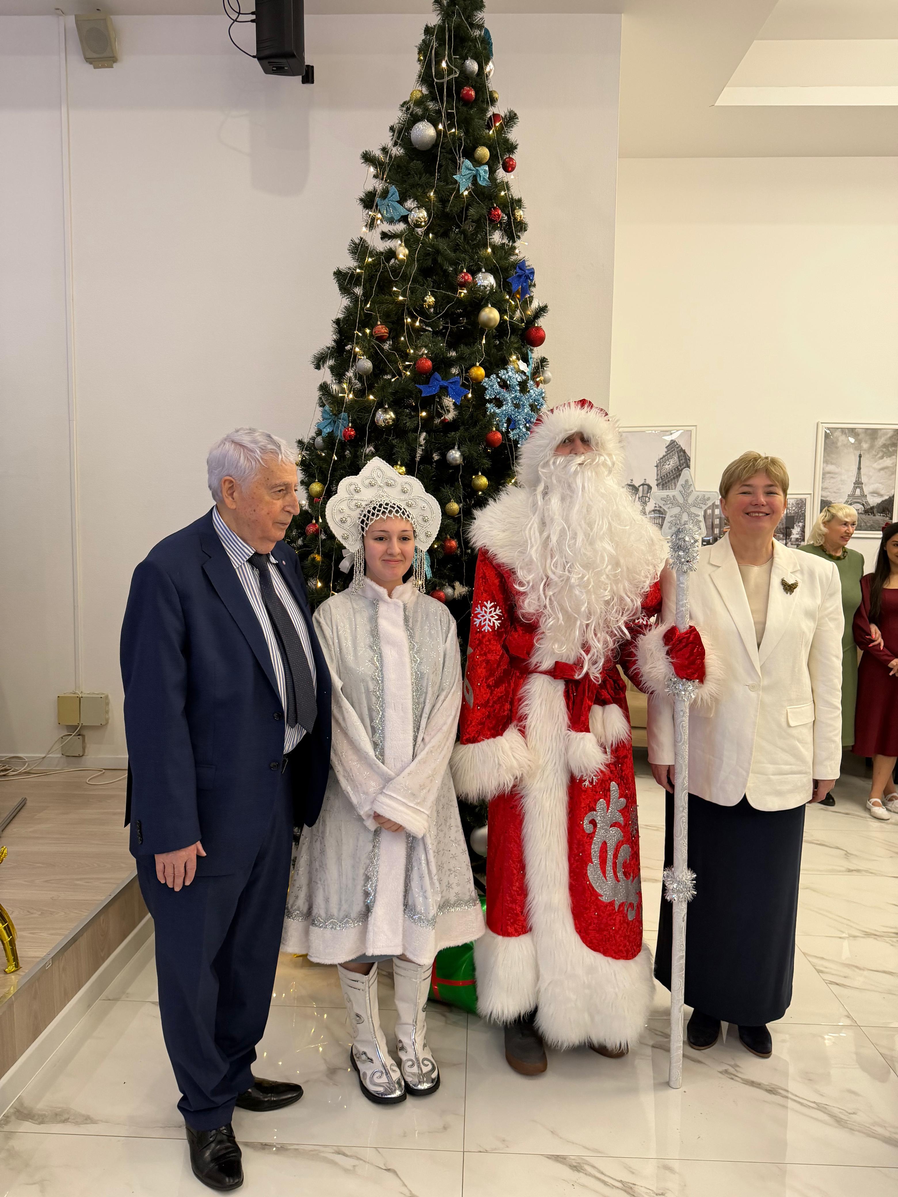 Встреча завершилась общей фотографией у новогодней ёлки.
