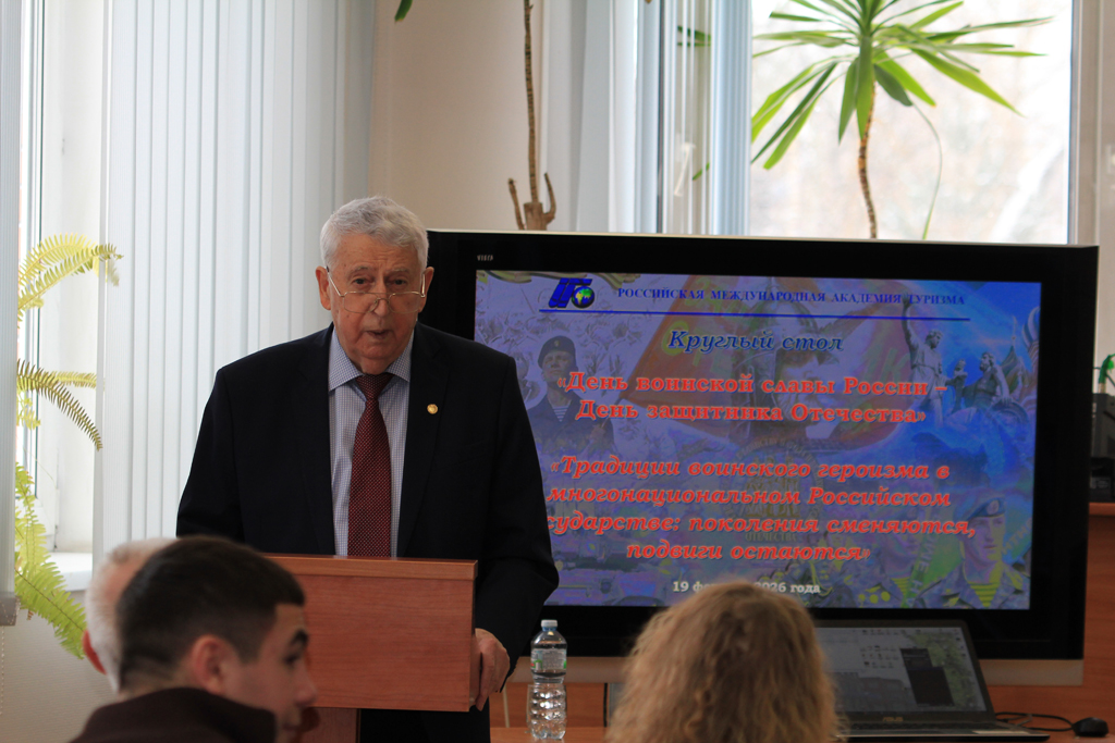 19 февраля в Российской международной академии туризма состоялся круглый стол на тему «Традиции воинского героизма в многонациональном Российском государстве: поколения сменяются, подвиги остаются», посвященный «Дню воинской славы России — Дню защитника Отечества».