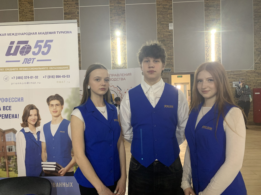Работу стенда РМАТ обеспечивали заместитель декана факультета менеджмента туризма Вобликов В.М. и заместитель декана факультета среднего профессионального образования Лямина Г.Г. Активное участие в популяризации академии приняли студенты-волонтеры факультета среднего профессионального образования. Студенты не только рассказывали о своих будущих профессиях, но и делились впечатлениями об условиях обучения, внеучебных мероприятиях, студенческой жизни и бытовых условиях. Команда РМАТ на выставке отличалась деловым корпоративным стилем и высокой активностью.