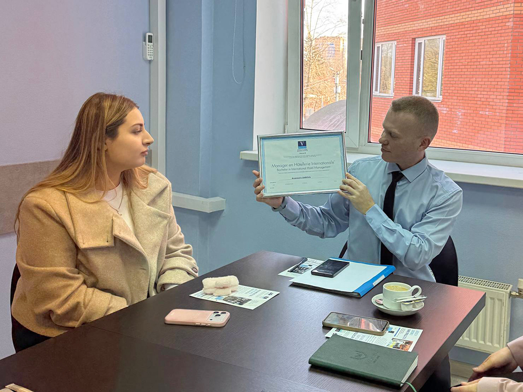 24 марта 2026 года на базе лаборатории «Учебный ресторан» в Российской международной академии туризма состоялся «Кофе-брейк с VATEL» - встреча, направленная на знакомство обучающихся выпускных курсов факультета среднего профессионального образования с престижной образовательной программой двух дипломов «Ватель-РМАТ: Международный гостиничный менеджмент.