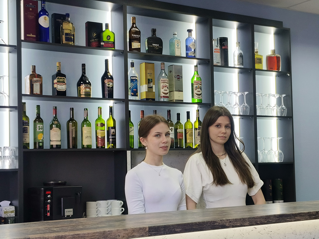 Студенты группы «Ватель-РМАТ», Олег Голиков и Ибрагим Батаев, которые угостили участников встречи чаем и кофе, рассказали о своем собственном опыте обучения на международной программе, о важности изучения иностранных языков и практике в пятизвездочной гостинице «Cosmos Selection Sheremetyevo Airport 5*».