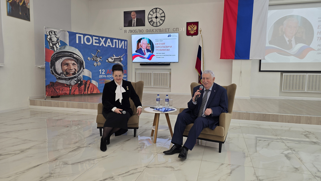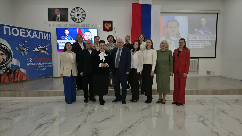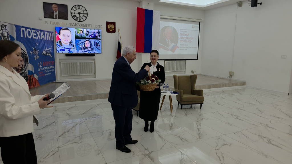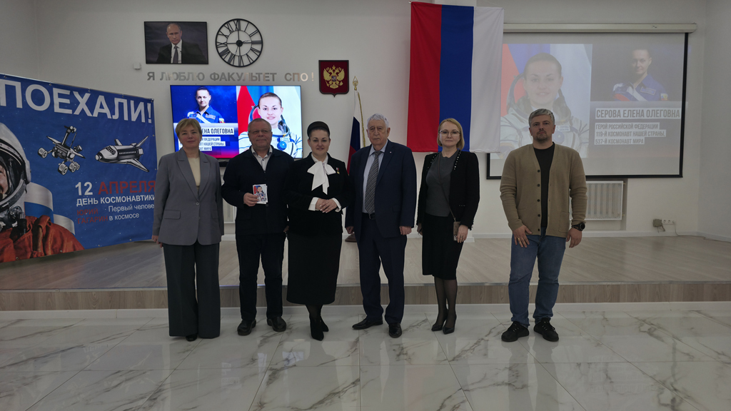 Космонавта-испытателя Елену Олеговну Серову тепло приветствовали ректор Академии Евгений Николаевич Трофимов и собравшиеся в уютном зале факультета среднего профессионального образования РМАТ.