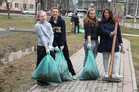 В рамках проведения месячника по благоустройству на территории городского округа Химки студенты факультета менеджмента туризма РМАТ и факультета среднего профессионального образования приняли активное участие в субботнике по благоустройству парка им. Величко в мкр. Сходня.
