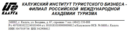 - Калужского института туристского бизнеса – филиала РМАТ