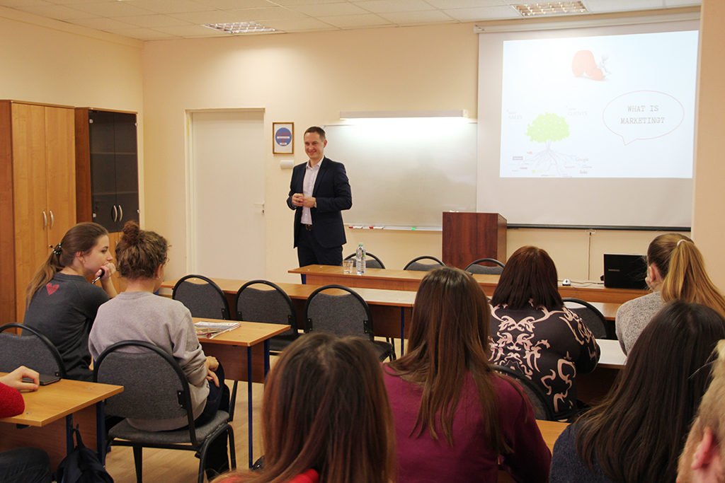 Профессор университета Кромалцас Саулюс выступил с лекциями на английском языке на темы: Введение в маркетинг туризма: определение маркетинга, маркетинговые процессы и Город как туристский бренд. Профессор Бражулиене Раса представила университет прикладных наук г. Утены и провела интерактивную лекцию на тему: The Creative Team Building: формирование и управление рабочим коллективом (Креативное командообразование).