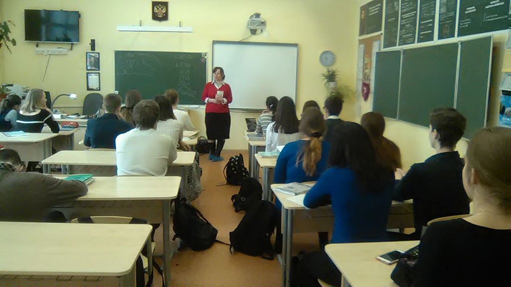 Прекрасная большая школа. Район новостроек. А территориально рядом расположена Российская международная академия туризма, о которой знают далеко не все учащиеся. Информацию о РМАТ для 10-11 классов представили заведующая кафедрой туроперейтинга Киреева Ю.А. и зам.заведующего кафедрой менеджмента и маркетинга Степуренко О.А.