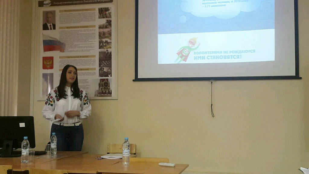 Бабаева Анна на конференции представила авторскую разработку «Блокнот волонтера». Данный блокнот является развлекательно-информационным материалом и ориентирован на волонтеров, которые будут работать на Чемпионате мира по футболу в 2018 году.