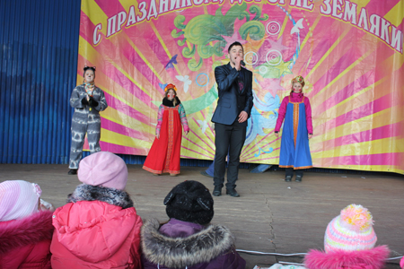 Для юных зрителей весёлые скоморохи с масленичными шутками и прибаутками провели конкурсы и игры на сообразительность, внимательность, координацию движения.