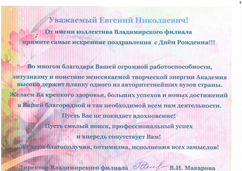 От всей души желаем Вам профессиональных успехов, верных решений, удачи в реализации всех идей и начинаний. Пусть работа всегда будет являться источником положительных эмоций, энергии и оптимизма. Пусть всегда остается время на близких и любимых людей.
