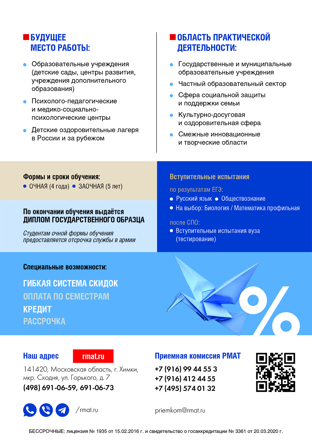 • Адрес приемной комиссии: Московская область, г.о. Химки, мкр. Сходня, ул. Горького, д. 7
