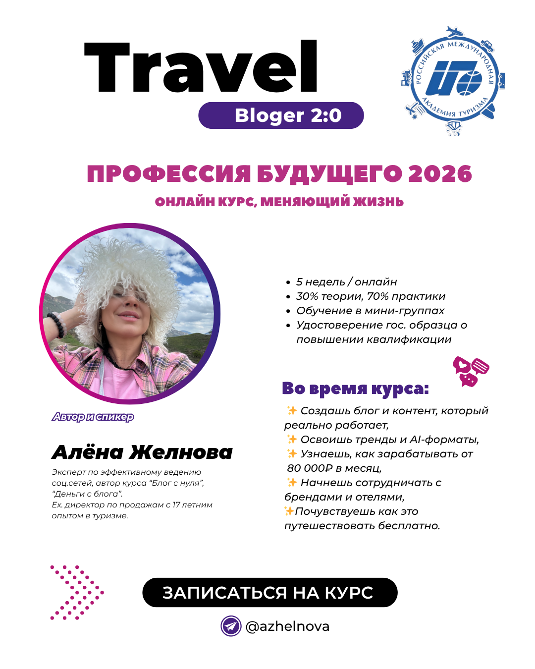 “Тревел-блогер 2025” — это профессия, дающая свободу, востребованность и доход из любой точки мира. Вы можете управлять своим временем, масштабировать себя и строить жизнь, о которой мечтали.