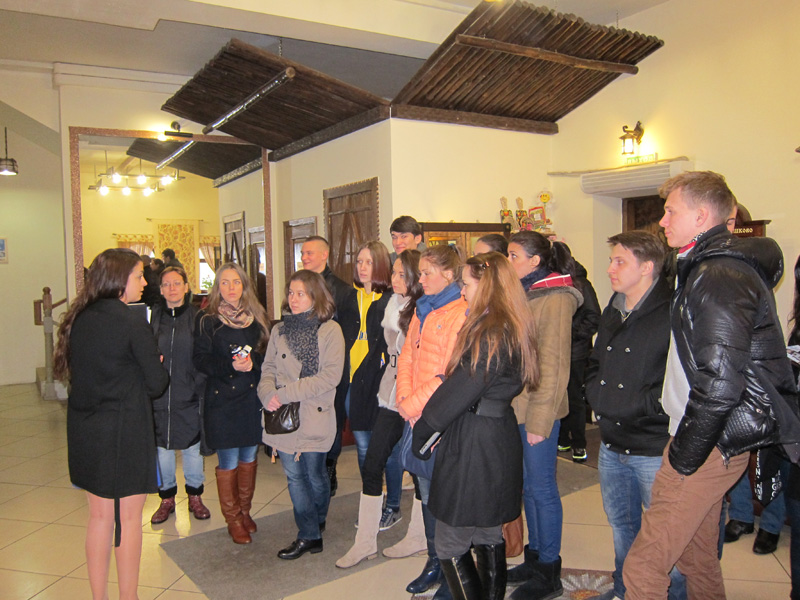 Сначала студенты и абитуриенты посетили Усадьбу Ромашково. Ведущий специалист познакомил студентов с историей создания этого гостинично-оздоровительного комплекса, созданного в традициях старинной русской усадьбы XVI-XVIII веков. Он рассказал, как появилась идея создания данного комплекса, какие использовались материалы при его строительстве, как подбирался интерьер для номеров и ресторанов, а также о сложностях, с которыми сталкиваются руководители в его управлении. Особый интерес вызвал рассказ об используемых рекламных и маркетинговых технологиях.