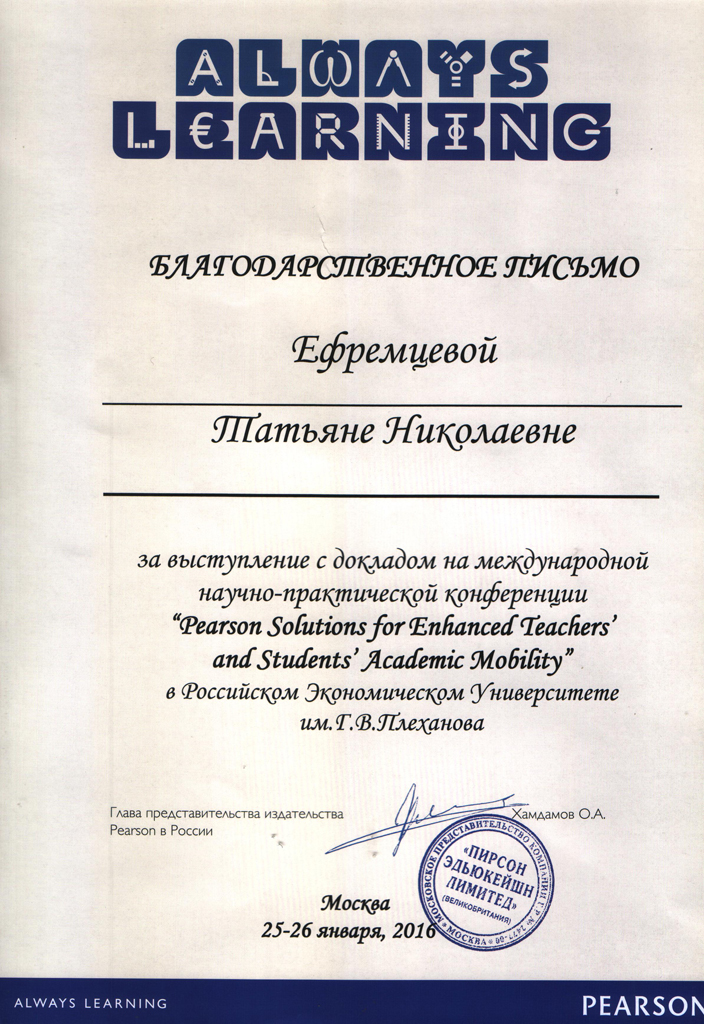 25-26 января преподаватели кафедры иностранных языков и зарубежного страноведения приняли участие в Международной научно-практической конференции “Pearson solutions for enhanced teachers’ and students’ mobility” ("Повышение академической мобильности преподавателей и студентов с Пирсон”), которая состоялась в вузе–партнере РМАТ РЭУ им.Г.В. Плеханова.