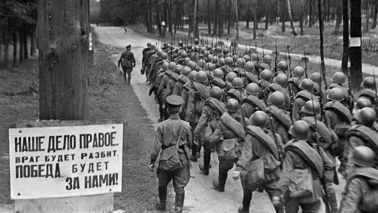 Из речи Сталина по радио 3 июля 1941 года: «Войну с фашистской Германией нельзя считать войной обычной… Наша война за свободу нашего Отечества сольется с борьбой народов Европы и Америки за их независимость, за демократические свободы».