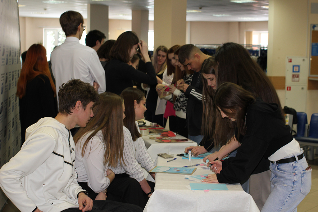 Студенты разных курсов, обучающиеся по направлению «Дизайн архитектурной среды» демонстрировали свое мастерство в дизайне авторской открытки. Каждый желающий мог сделать свою открытку, используя самые доступные материалы: картон, цветную бумагу, фетр и клей.