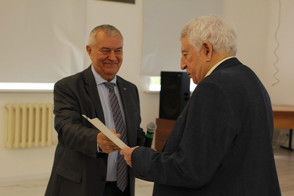 Директор санатория Василий Иванович Найдёнов поздравил преподавателей с Днём учителя, а ректору Евгению Николаевичу Трофимову вручил в честь праздника Почётную грамоту.
