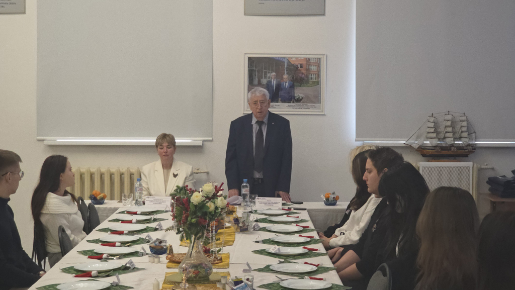 Для студентов были приготовлены и другие подарки: юбилейное издание «55 лет РМАТ. Новые горизонты» и книга ректора «Верность истокам» с дарственной подписью, наборы конфет. Ректор тепло общался со студентами, интересовался их успехами и проблемами. Он заверил, что Академия всегда готова оказать всестороннюю поддержку. Евгений Николаевич традиционно придаёт огромное значение воспитанию патриотизма и чувства ответственности у молодого поколения.