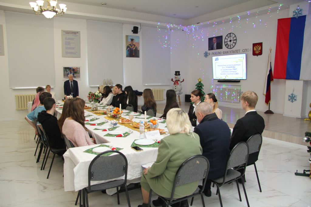 В преддверии Нового года в актовом зале учебного корпуса № 2 факультета среднего профессионального образования состоялась встреча ректора, доктора политических наук Евгения Николаевича Трофимова со студентами, чьи родители стали участниками специальной военной операции.