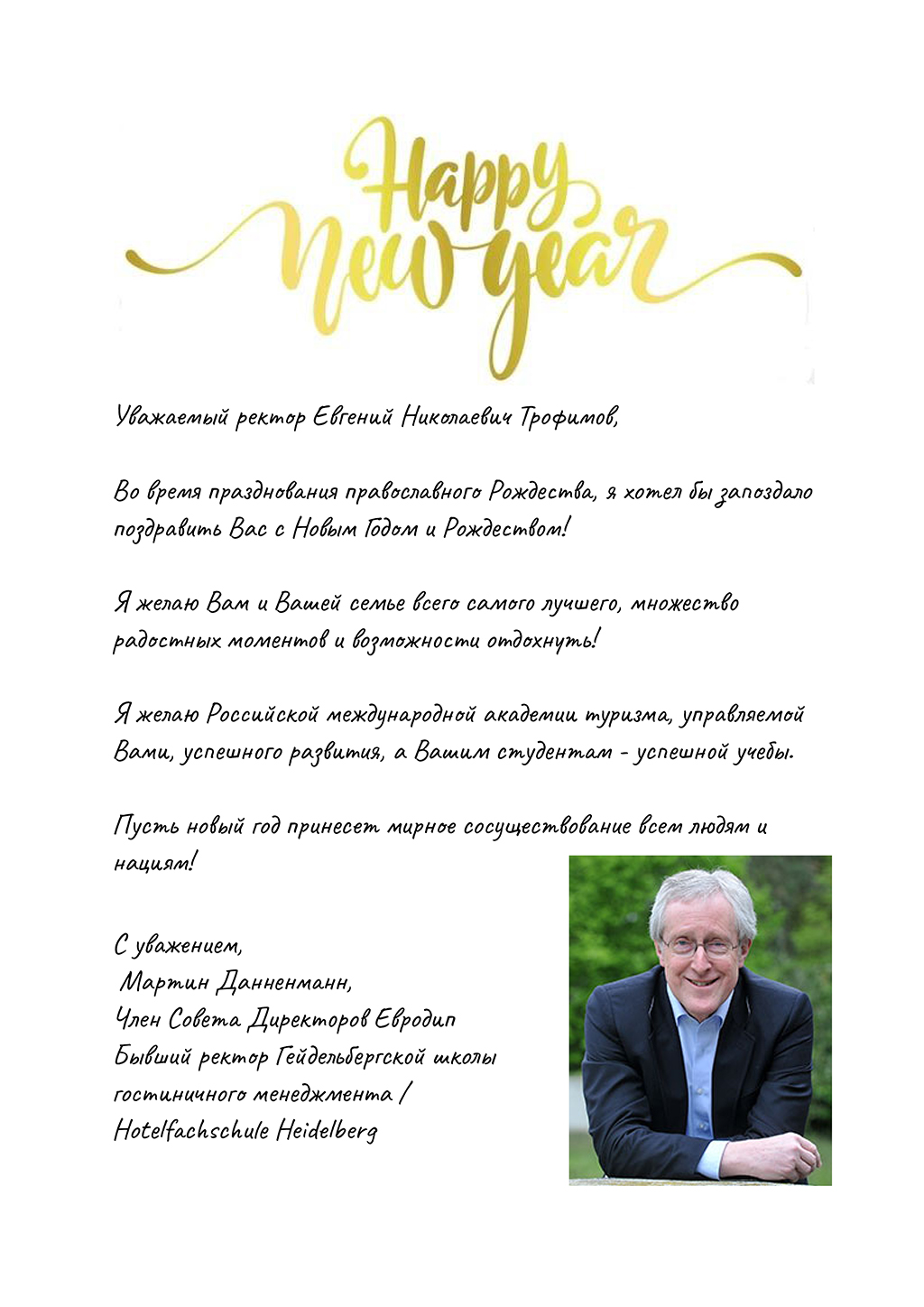 МАРТИН ДАННЕНМАНН, ЧЛЕН СОВЕТА ДИРЕКТОРОВ ЕВРОДИП, ПОЗДРАВЛЯЕТ С НОВЫМ ГОДОМ И РОЖДЕСТВОМ!