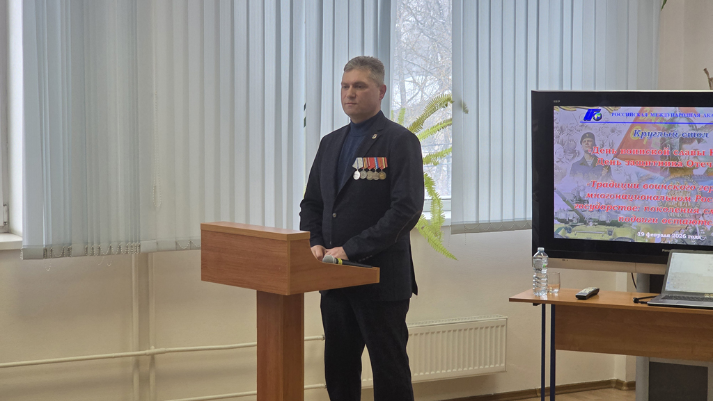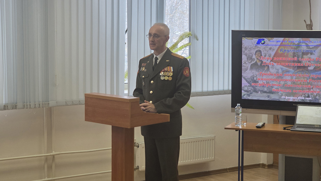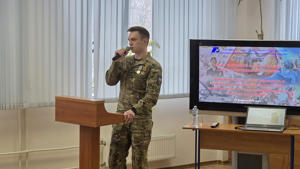 19 февраля в Российской международной академии туризма состоялся круглый стол на тему «Традиции воинского героизма в многонациональном Российском государстве: поколения сменяются, подвиги остаются», посвященный «Дню воинской славы России — Дню защитника Отечества».