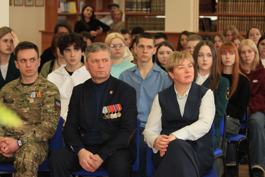 Перед студентами академии выступили почетные гости мероприятия, участники специальной военной операции, член Ассоциации ветеранов СВО по г.о. Химки Степушин Владислав Игоревич, выпускник РМАТ, и член Всероссийской общественной организации ветеранов «Боевое братство» Пономарёв Вячеслав Геннадьевич. Они отметили, что воинский героизм — это проявление высшей формы моральной ответственности и боевой активности в вооруженном столкновении, когда солдаты, воинские отряды, народ самоотверженно совершают поступки, не подчиняющиеся обычным, повседневным нормам поведения, нацеленные на победу над врагом. Немеркнущими традициями воинского героизма славится история многонационального российского государства. Герои в России были, есть и будут во все времена. Это самый верный залог несокрушимости и мощи нашей страны, ее духовной крепости и поступательного развития. Пока жив российский солдат — верный сын и защитник своего Отечества — будет жива и Россия. Также они обратили внимание студентов Академии на необходимость больше интересоваться историей своей Родины, никогда не забывать тех людей, которые отдали свою жизнь в войне, ценить их стойкость и героизм. Студенты с волнением слушали рассказы о боевых действиях, в которых приняли участие ветераны, задавали им вопросы.