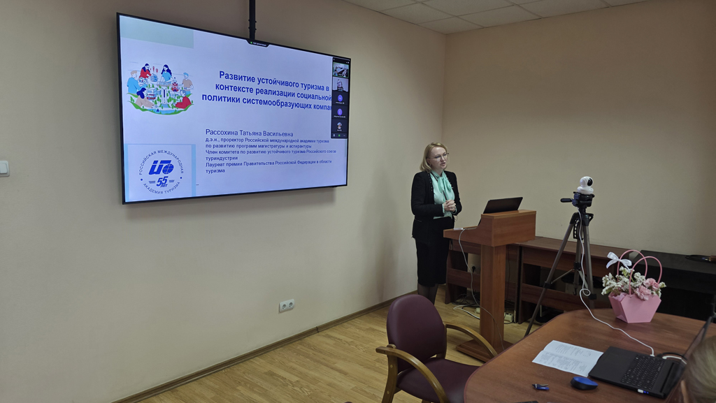 Рассохина Татьяна Васильевна, доктор экономических наук, доцент, проректор по развитию программ магистратуры и аспирантуры свой доклад «Развитие устойчивого туризма в контексте реализации социальной политики системообразующих компаний» посвятила ключевым научным проблемам, которые являются приоритетными для научных школ РМАТ в сфере экономики.