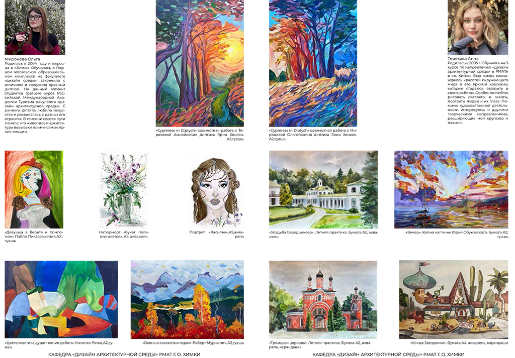 Для студентов профильных направлений (например, «Дизайн архитектурной среды») художественный конкурс стал формой апробации научно-исследовательских компетенций. Работы были представлены в виде проектов трансформации городских пространств, набережных или объектов культурного наследия, с которыми обучающиеся РМАТ участвуют в международных конкурсах и выставках.