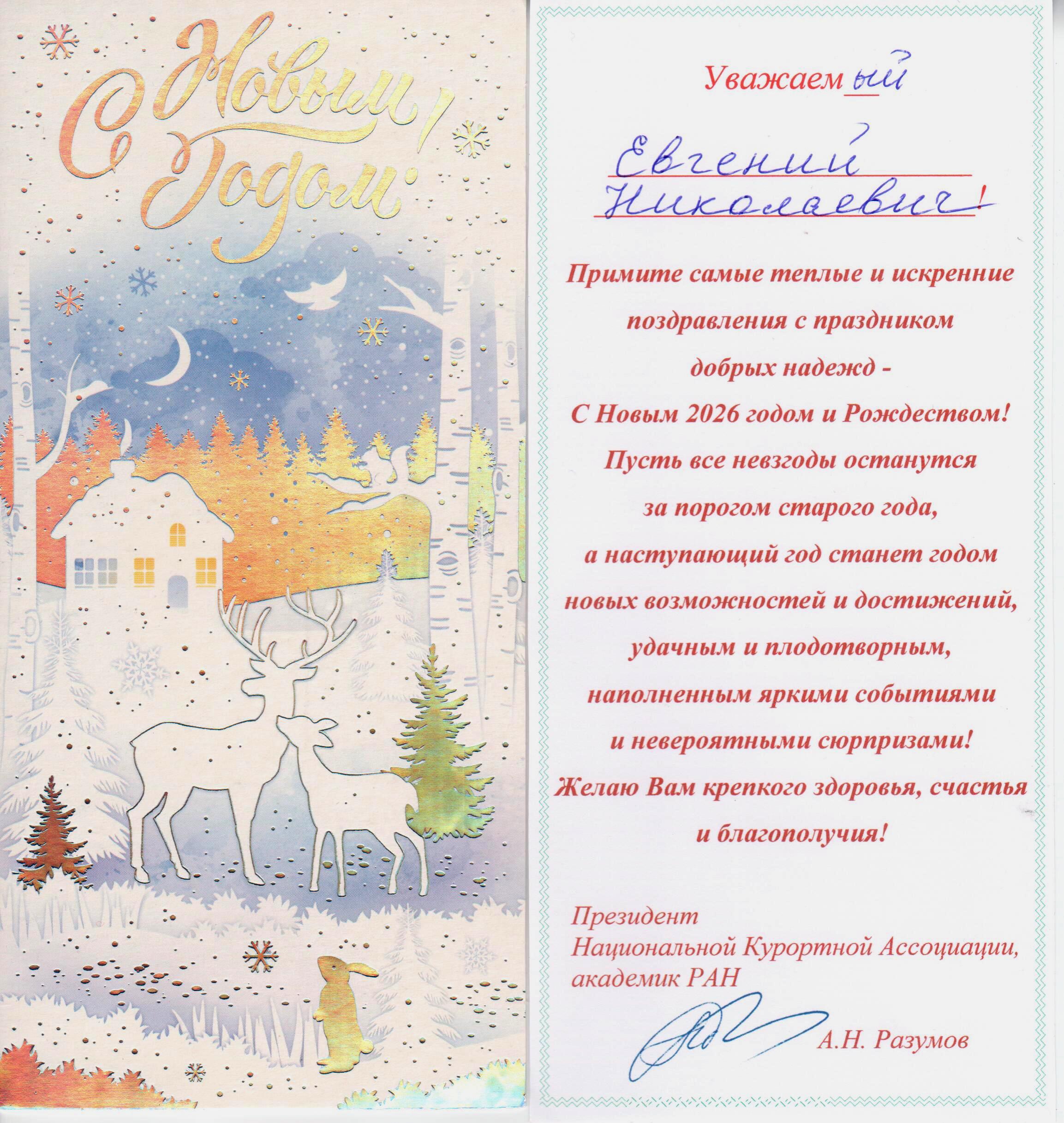 ПРЕЗИДЕНТ НАЦИОНАЛЬНОЙ КУРОРТНОЙ АССОЦИАЦИИ, АКАДЕМИК РАН А.Н. РАЗУМОВ ПОЗДРАВЛЯЕТ С НОВЫМ ГОДОМ И РОЖДЕСТВОМ!