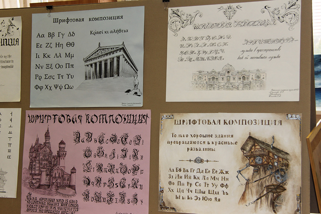 Творческие художественные работы размещались в двух залах: на четвертом этаже были представлены работы студентов факультета менеджмента туризма: