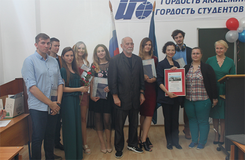 Евгений Николаевич вручил грамоты РМАТ выпускникам, принимавшим активное участие в общественной жизни Академии, представлявших РМАТ на международных, федеральных и городских спортивных и творческих мероприятиях.