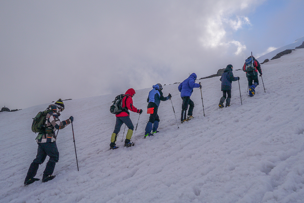3 августа все участники похода, поднявшись на канатной дороге от поляны Азау до станции Гарабаши, совершили подъем по склону Эльбруса до Скал Пастухова.