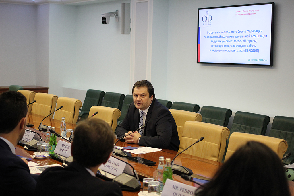 12 сентября 2018 года ректор Российской международной академии туризма Евгений Николаевич Трофимов с испанской делегацией во главе с президентом Ассоциации ведущих гостиничных школ Европы (ЕВРОДИП), директором Группы Лезама, (Мадрид, Испания) г-ном Луисом Лезама были приняты в высшей палате законодательного органа – Совете Федерации России.