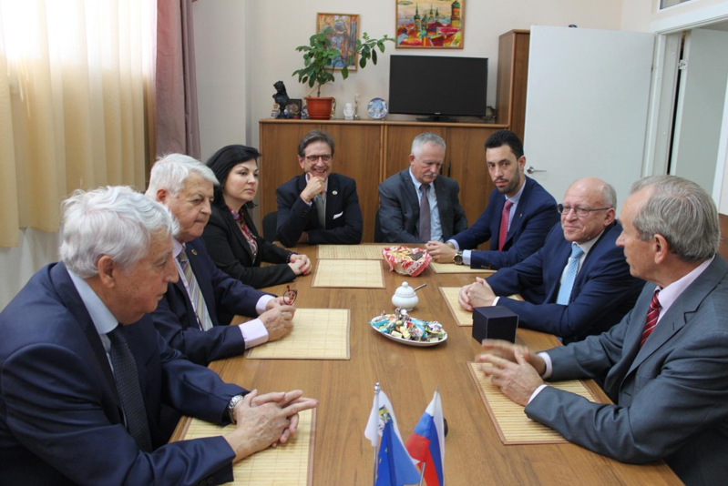 В ходе пребывания делегации ЕВРОДИП в Московском филиале РМАТ состоялись встречи и переговоры ректора РМАТ Трофимова Е. Н. и президента ЕВРОДИП г-на Луиса Лезамы с руководителями партнерских организаций. Состоялась встреча с Президентом Российской Гостиничной Ассоциации Геннадием Андреевичем Ламшиным, Президентом Гильдии Шеф-поваров России Александром Николаевичем Филиным.