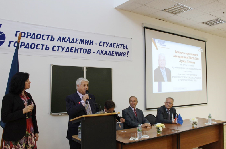 Главным мероприятием визита делегации ЕВРОДИП стала встреча г-на Луиса Лезамы со студентами и преподавателями Московского филиала РМАТ.