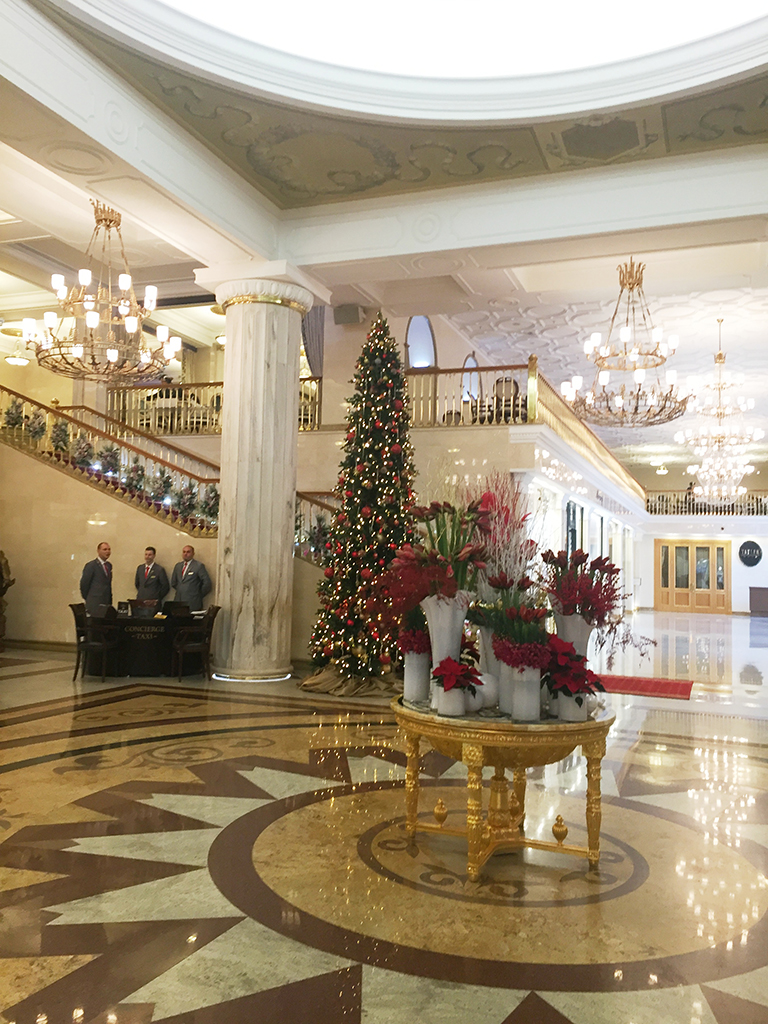 Отель «Рэдиссон Ройал Москва» - одна из семи величественных сталинских высоток, интерьеры которых сочетают в себе традиции русского барроко и элементы храмовой архитектуры. Отель произвел грандиозное впечатление на наших студентов-второкурсников.
