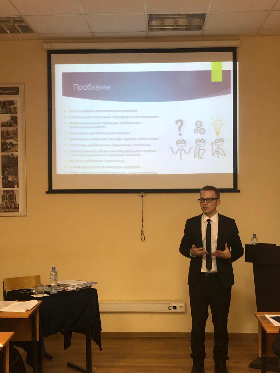 Представители РМАТ приняли участие в дискуссии в рамках секции «Потенциал и перспективы развития индустрии гостеприимства г. Москвы». С докладом «Проблемы и перспективы развития системы классификации гостиниц и иных средств размещения» выступил старший преподаватель кафедры туроперейтинга, эксперт по классификации гостиниц Арсений Роман Михайлович. В его выступлении был представлен анализ изменения нормативно-правовой базы классификации гостиниц, связанной с принятием «закона о классификации» и переходом сферы туризмы от Министерства культуры к Министерству экономического развития. Доклад вызвал живой интерес и оживленную дискуссию.