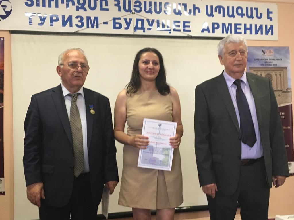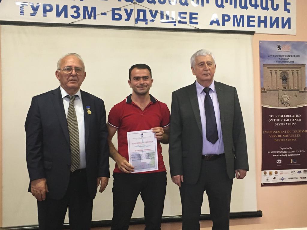 Ректор вручил памятные медали чрезвычайному и полномочному послу Республики Казахстан в Республике Армения Урузаеву Тимуру Бибиталиевичу, чрезвычайному и полномочному послу Республики Беларусь в Республике Армения Назарчуку Игорю Васильевичу, директору Российского центра науки и культуры в Ереване (Россотрудничество) Рыбинскому Сергею Алексеевичу, президенту Армянской федерации туризма Мехак Априсяну Ремировичу. Все награжденные выступили на мероприятии и говорили о высокой роли Академии в подготовке туристских кадров.