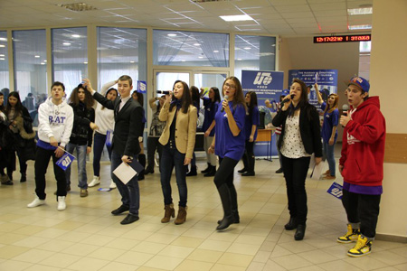В агитбригаду входили студенты разных курсов РМАТ. Ведущими акции были Ольга Нагуманова (студентка 501 группы), и Никита Кузнецов (студент 201 группы). Приятно отметить, что активное участие в мероприятии приняли студенты первого курса.