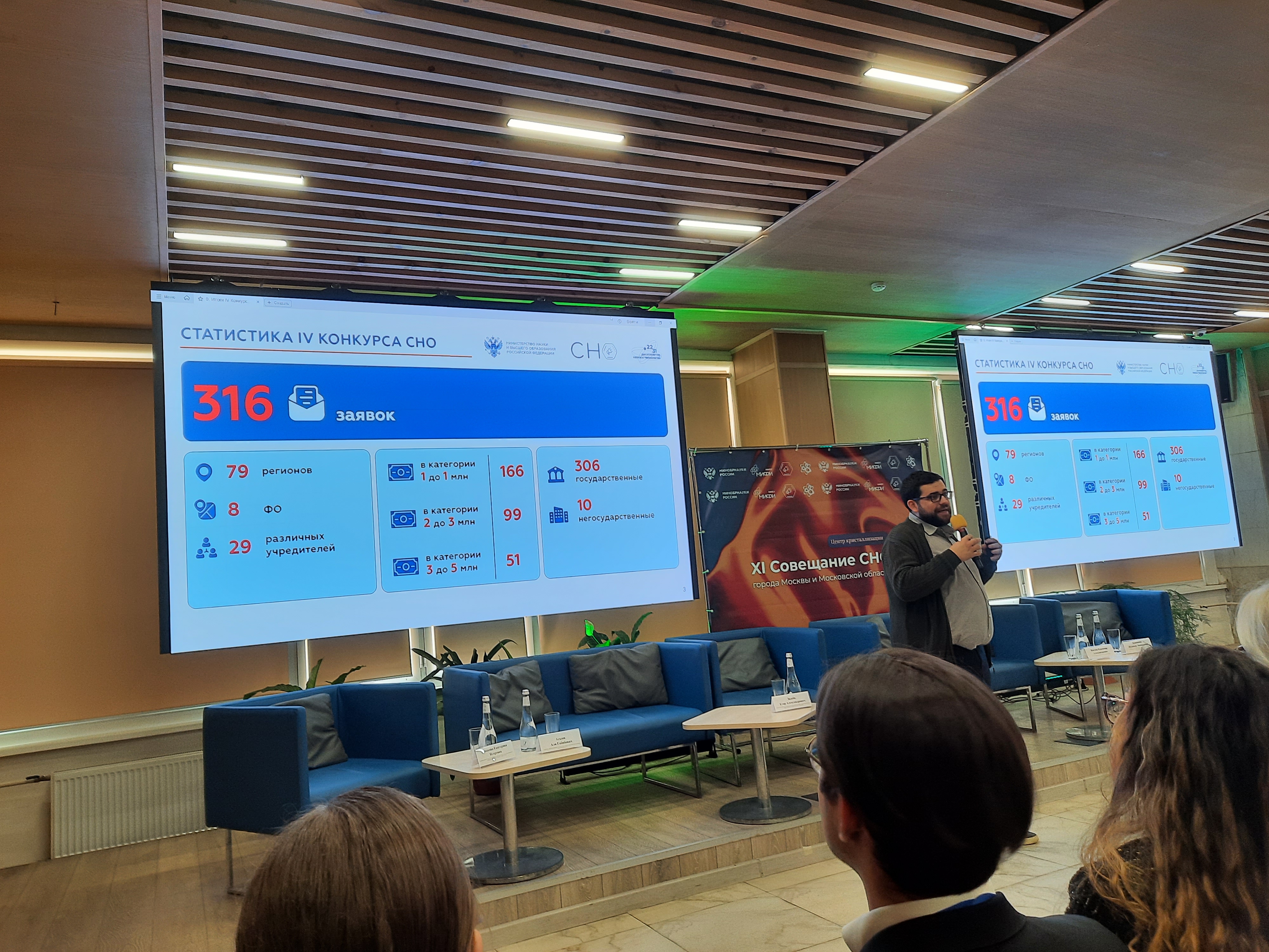 Особый интерес вызвали выступления победителей IV Конкурса СНО, которые представили краткие обзоры своих проектов, получивших финансовую поддержку от государства. Это позволило участникам Совещания ознакомиться с лучшими практиками организации научной работы.