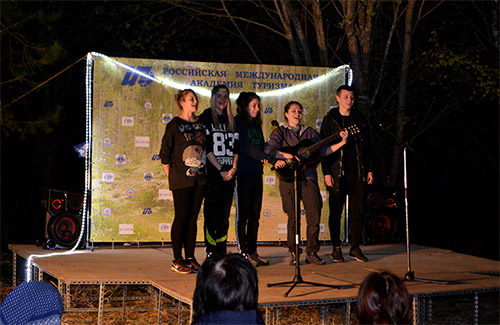 Третьекурсники факультета торжественно поприветствовали всех участников слета и представили зрителям исполнение туристских песен под гитару. По результатам этого состязания команда 3 курса факультета СПО заняла 3 место.
